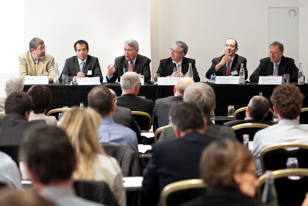 A lively panel discussion moderated by journalist Willy De Backer completed the morning session. The panel included (from left to right in the image below)Prof. Mike Matlosz of ENSIC in Nancy, Suschem board member Paul-Joel Derian from Rhodia, Herbert von Bose, Willy De Backer, Denis Bortzmeyer of Axelera and Horst Soboll: a prominent member of the Commission’s ETP Expert Group.