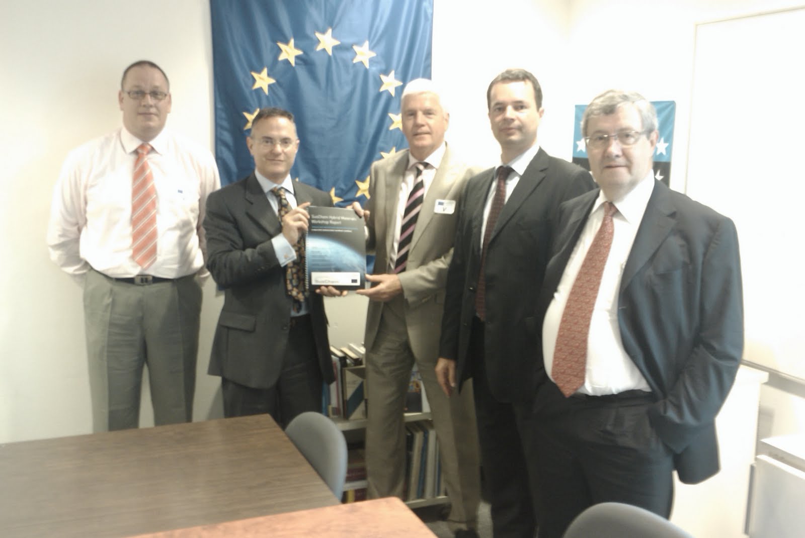 Present at the meeting in the Commission's Champs de Mars offices in Brussels were (from left to right in the picture below) John van Haare from the Dutch Polymer Institute (DPI), Renzo Tomellini, Head of Unit for 'Nanosciences and Nanotechnologies' at DG Research European Commission, Ger Spork Innovation Manager at Cefic/ Suschem, Helge Wessel of DG Research, and Jacques Joosten from DPI.